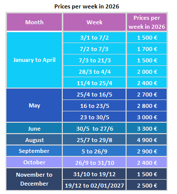 Mandatory cleaning at the end of the stay to ensure a house in perfect condition for the following holidaymakers: 250€